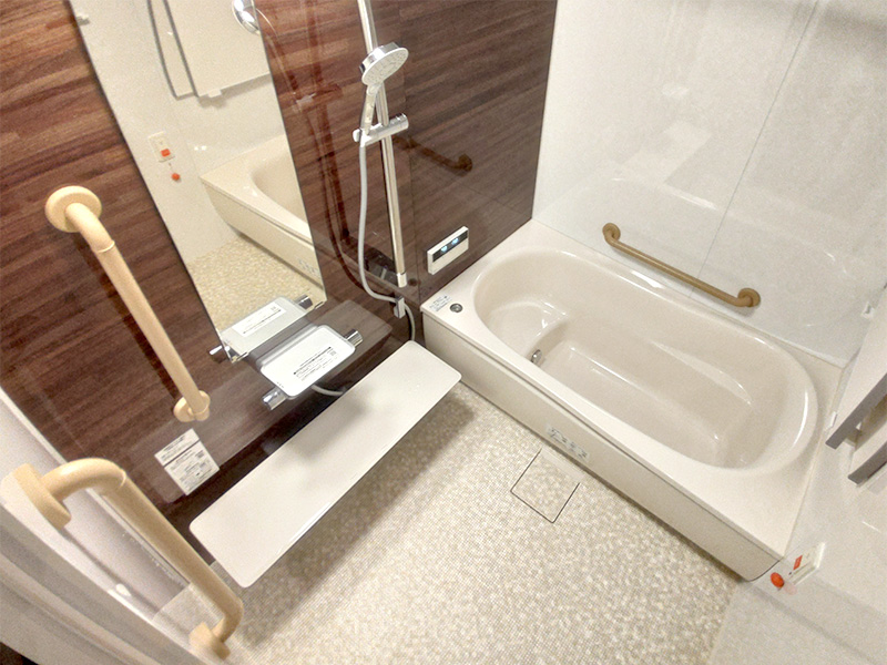 手すりを3カ所設置したことで安心して入浴できます。